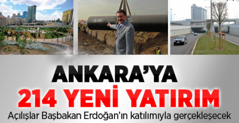 Aralarında parklar, Köprülü kavşaklar, yaya üst geçitleri, aile yaşam merkezleri, hanım lokalleri, itfaiye binaları, katlı kapalı otoparklar, yer altı barajı, atık su ve içme suyu arıtma tesisleri, dış cephe yenilemeleri, meydan saatleri, taksi duraklarının da bulunduğu 214 tesisin resmi açılışını Başbakan Recep Tayyip Erdoğan ve Ankara Büyükşehir Belediye Başkanı Melih Gökçek, Saat 14.00’da Arena’da düzenlenecek şenlik şeklindeki törenle birlikte yapacaklar.
