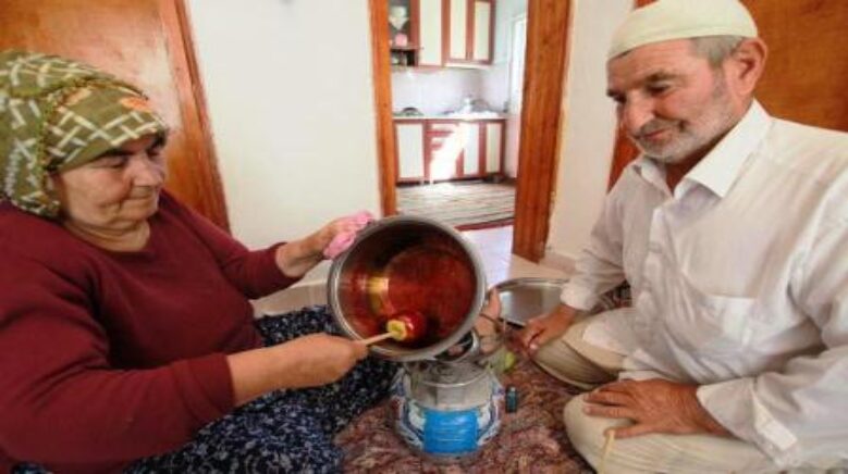 Çubuk’ta yaşayan Yılmaz çifti, çocukların vazgeçilmezi “elma şekeri” geleneğini yaşatarak, hem çocukları sevindiriyor hem de aile bütçesine katkı sağlıyorlar.