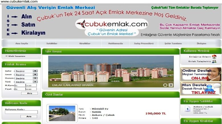 Çubuk Emlak Web sitesi www.cubukemlak.com ile hem firmanız sektöründe kariyer kazanacak, hemde yaptığı tanıtım ve ilan ile tüm Türkiye tarafından tanınacak, emlak alım ve satışı yapabileceksiniz.