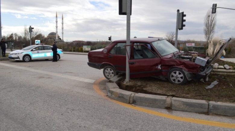 Çarpışmanın etkisiyle, Çimgar’ın kullandığı otomobil kavşakta orta refüjün üzerine çıktı.