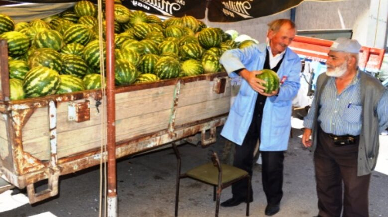 Pazara diğer çevre ilçe ve illerden getirilen yerli organik karpuz ve kavunlar bayram öncesi müşterilerinden rağbet görüyor.