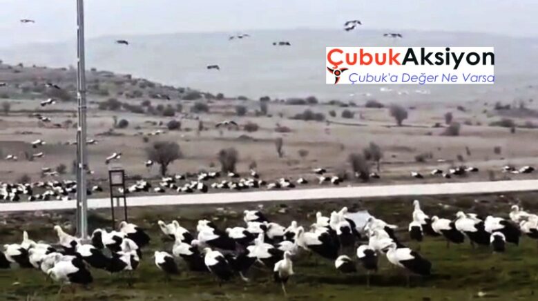 Çubuk ilçe merkeze 15 km uzaklıkta bulunan Susuz Mahallesinde konaklayan leylekler ilk defa bu kez çok kalabalık sürü halinde arazide inerken bir vatandaşın kamerasına yansıdı.